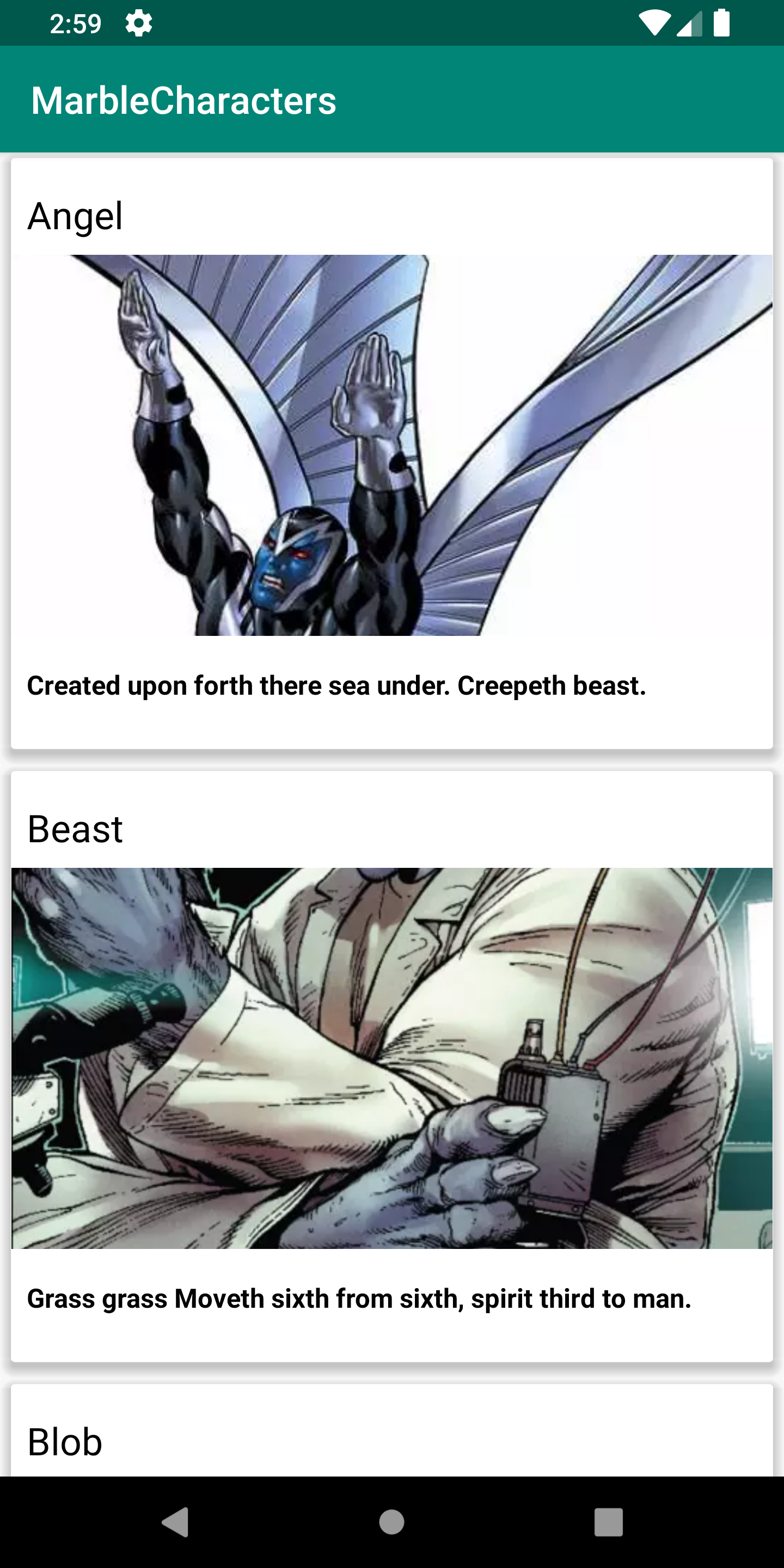 We're going to display list of hero name, image and description on the screen. You can think I am gonna build RecyclerView using Litho.